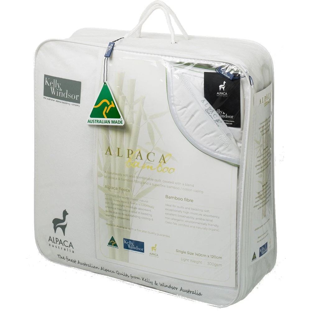 The alpaca and bamboo fibre filling is highly moisture absorbent (much more so than cotton) and the cover fabric on the Alpaca Bamboo quilt feels sensationally silky smooth. The bamboo fibre inside and outside means this quilt set will absorb moisture to keep you dry and comfortable whilst sleeping.