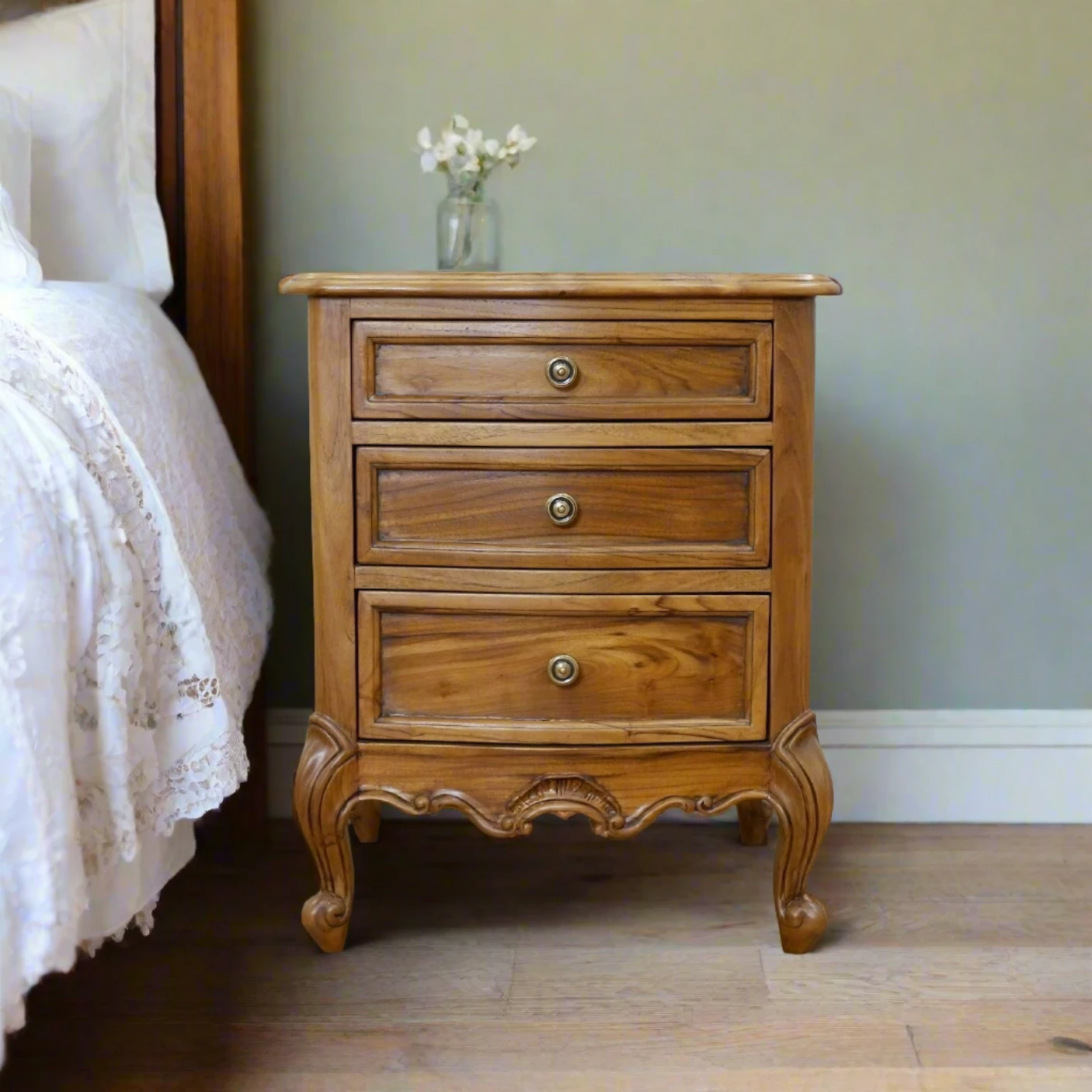 Introducing the Barbuda Bedside Table, where style and sustainability meet. Handcrafted from sustainably sourced hardwood, this piece channels the elegance of Louis XVI furniture for a timeless addition to any room. With exquisite detailing, it’s a sophisticated choice for those who appreciate luxury and craftsmanship.