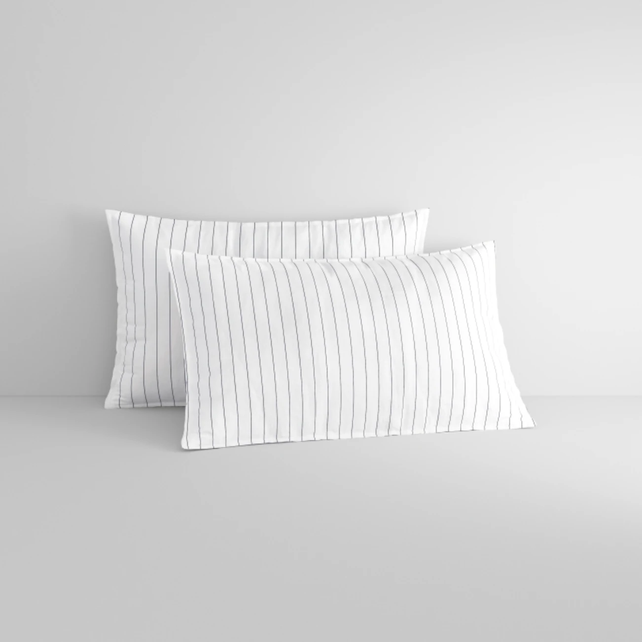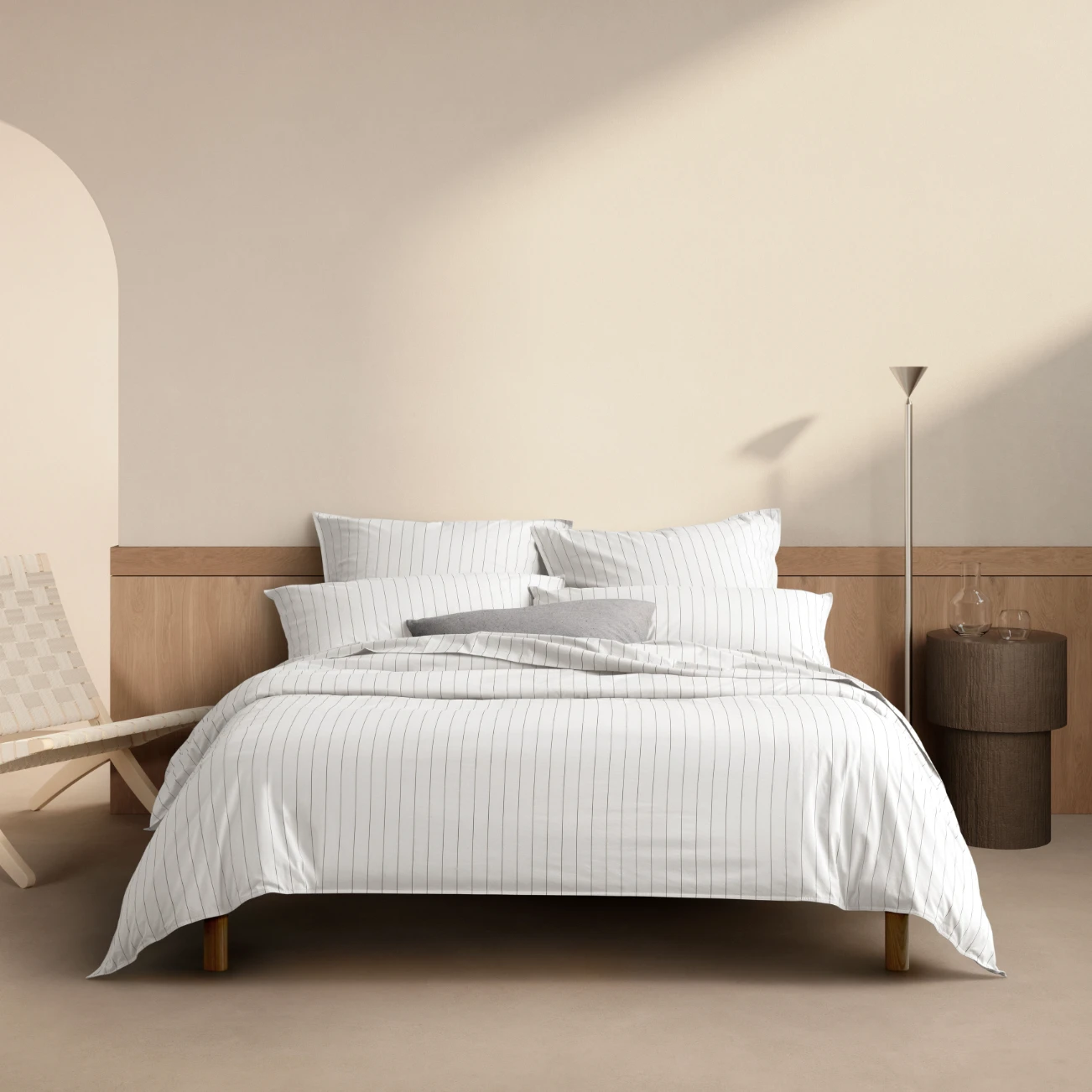 The Bayley Stripe Washed Percale collection offers the softness and laidback style of the washed percale fabrication, now with a side of statement stripes. Breathable and light with a soft, matte finish that makes for relaxed bedroom styling. Crafted with cotton percale and garment washed for ultimate softness, it features a yarn dyed stripe throughout.