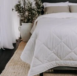 The Indi Coverlet Set is pictured with 2x Vivid Coordinates European Pillowcase in Sage, 1x Vivid Coordinates Square Cushion in Sage and 1x Indi Square Cushion, all available for purchase separately.