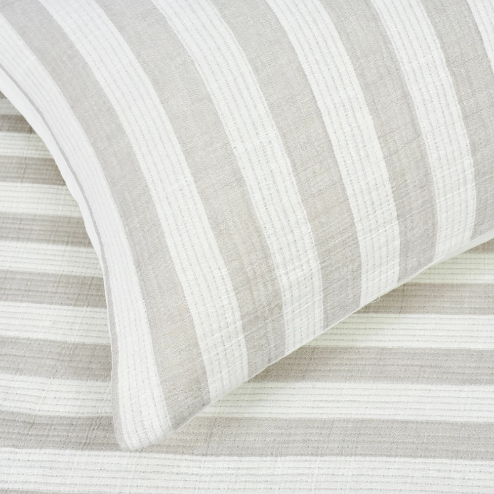 The neutral coloured Woden quilt cover set is made from a breathable, lightweight fabric.
