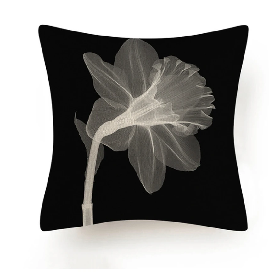 The Black and White Abstract Flower Cushion III is striking on its own.