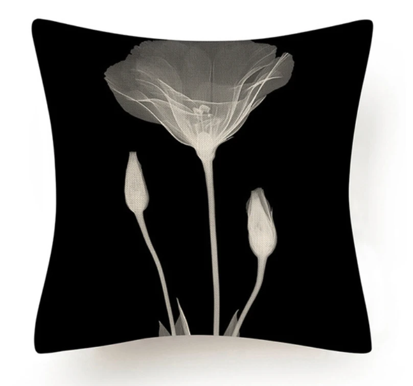 The Black and White Abstract Flower Cushion IV is striking on its own.