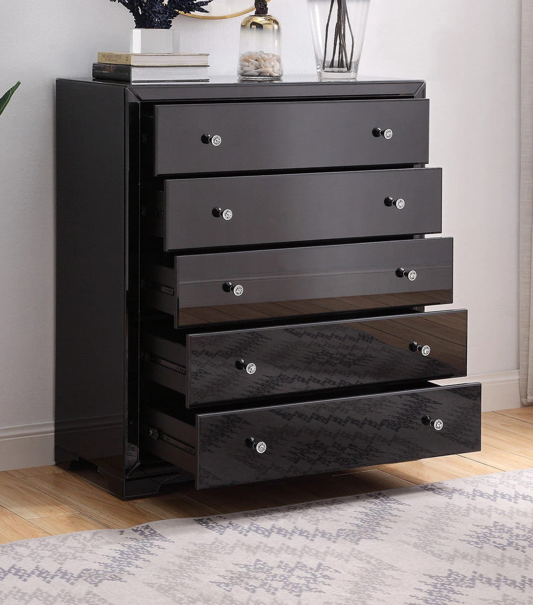 Constructed to a high quality specification, this dazzling piece of furniture has smooth, easy-glide drawers finished with glamorous chrome & crystal effect handles.