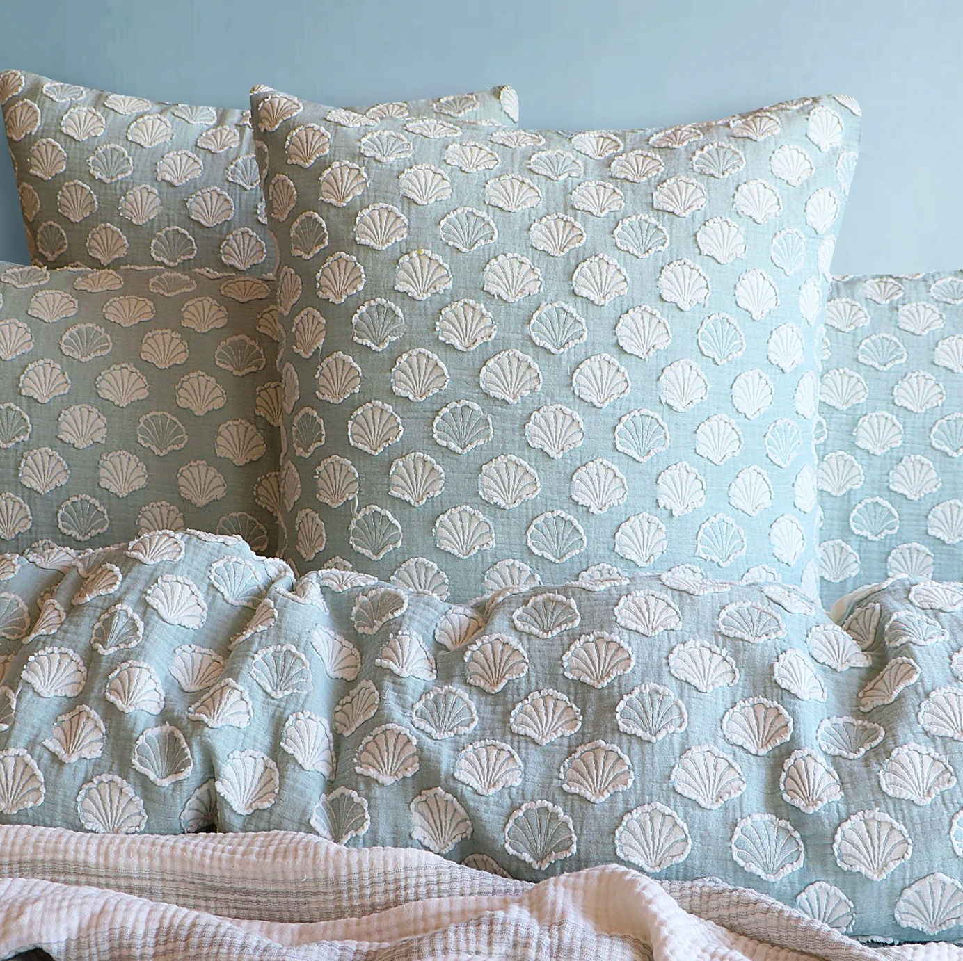 A beautifully textured shell pattern European Pillowcase to pair with the Coralium Quilt Cover Set or mix and match with other pillowcases.