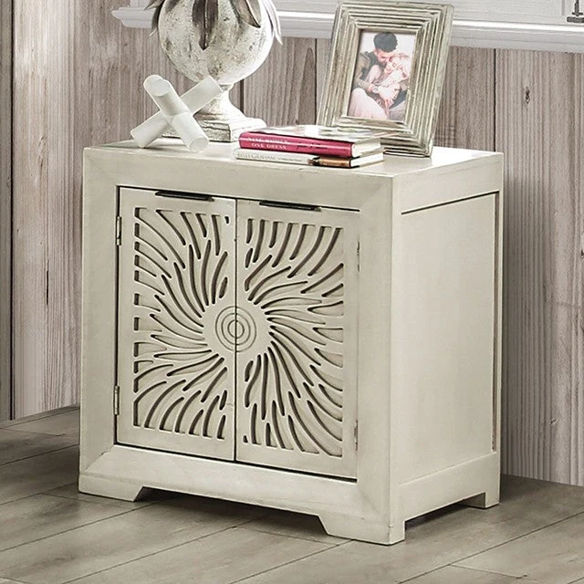 This night stand is a definite showstopper. An etched wooden sunburst pattern serves as the focus, grabbing everyone’s attention. What keeps the flamboyant centerpiece in check is the rather subdued ivory color, hand-painted and hand-finished to bring out the beauty of the solid Brazilian pine wood. The result is a night stand that’s nothing short of exotic.