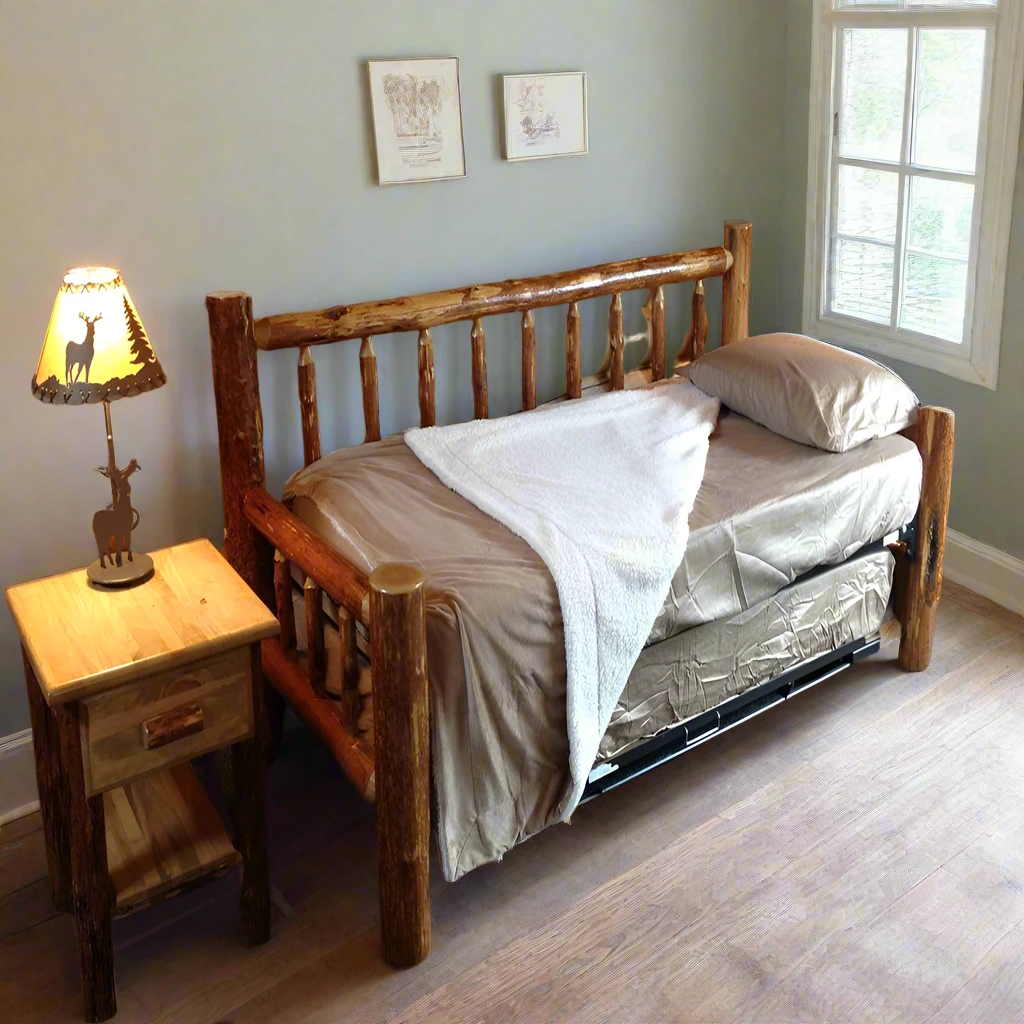 Inspired by the rugged beauty of Montana, USA, our Glacier Wood Day Bed is handcrafted to bring the feeling of a cozy log cabin into your bedroom. Made from genuine lodge pole pine and protected by a professional lacquering process, this bed is not only beautiful but also strong enough to support up to 500kg. Some assembly required. Trundle sold separately.