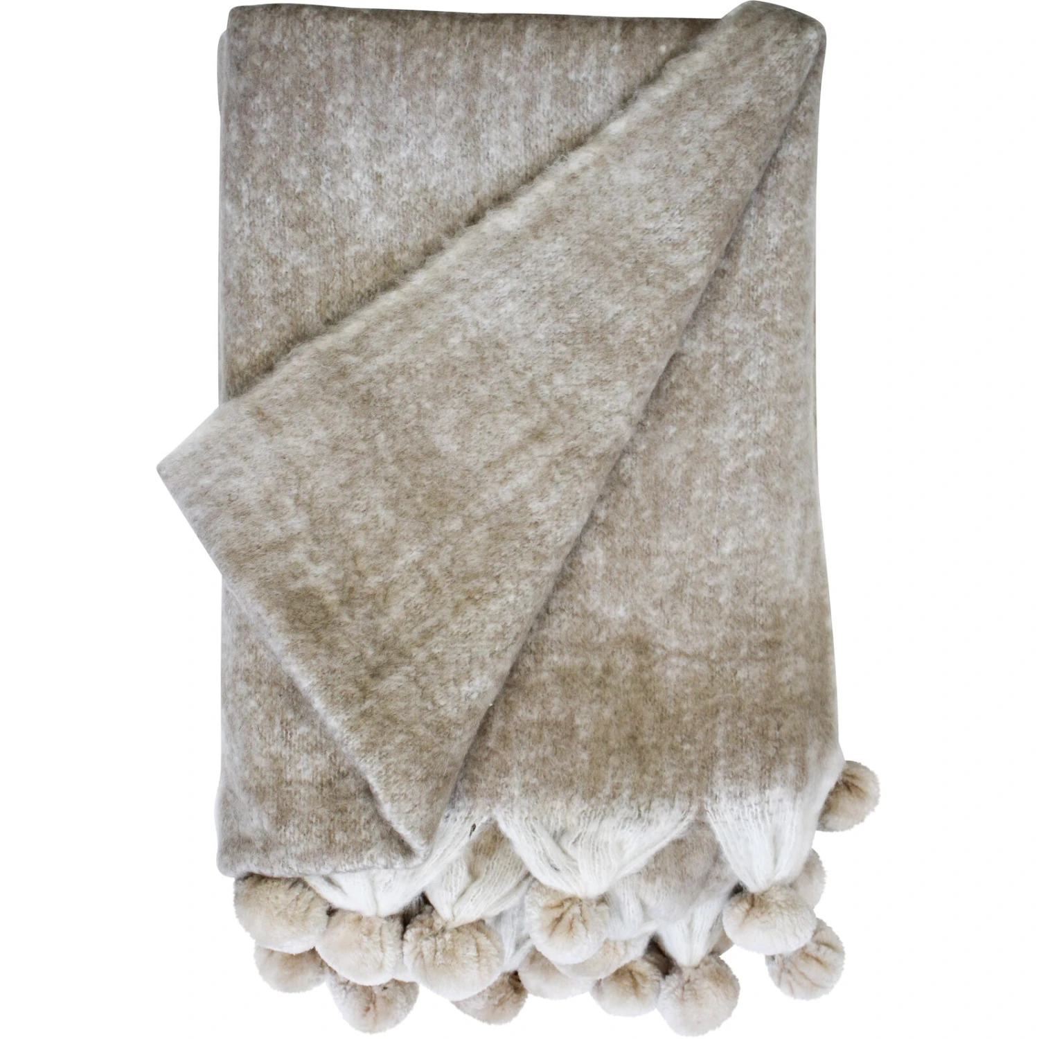 This handmade blanket in is a cozy and stylish addition to any living area. Crafted from soft fabric, this throw is finished with playful pom pom edges for an extra touch of fun.