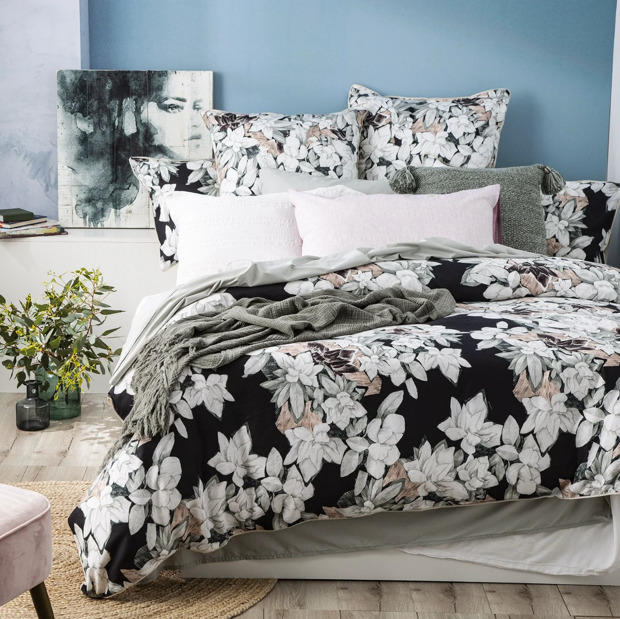 Transform your bedroom into an elegant oasis with our Ivy Quilt Cover Set. Featuring a beautiful floral design in blush and dark tones, this set adds a touch of sophistication to any space. Bring nature inside and give yourself the gift of relaxation.