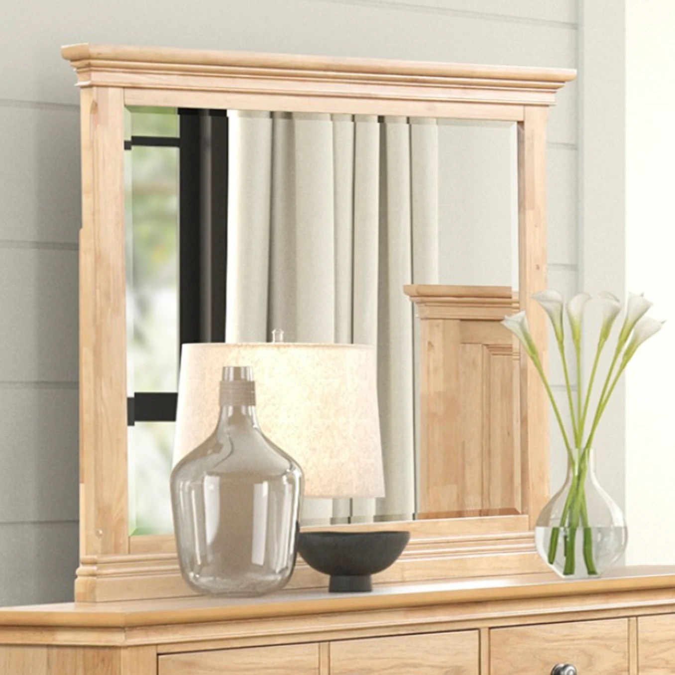 The Julien Mirror crafted from solid wood with a natural oak finish. A timeless simple aesthetic to freshen up your space. Perch this mirror on top of the Julien Dresser for a matching set.