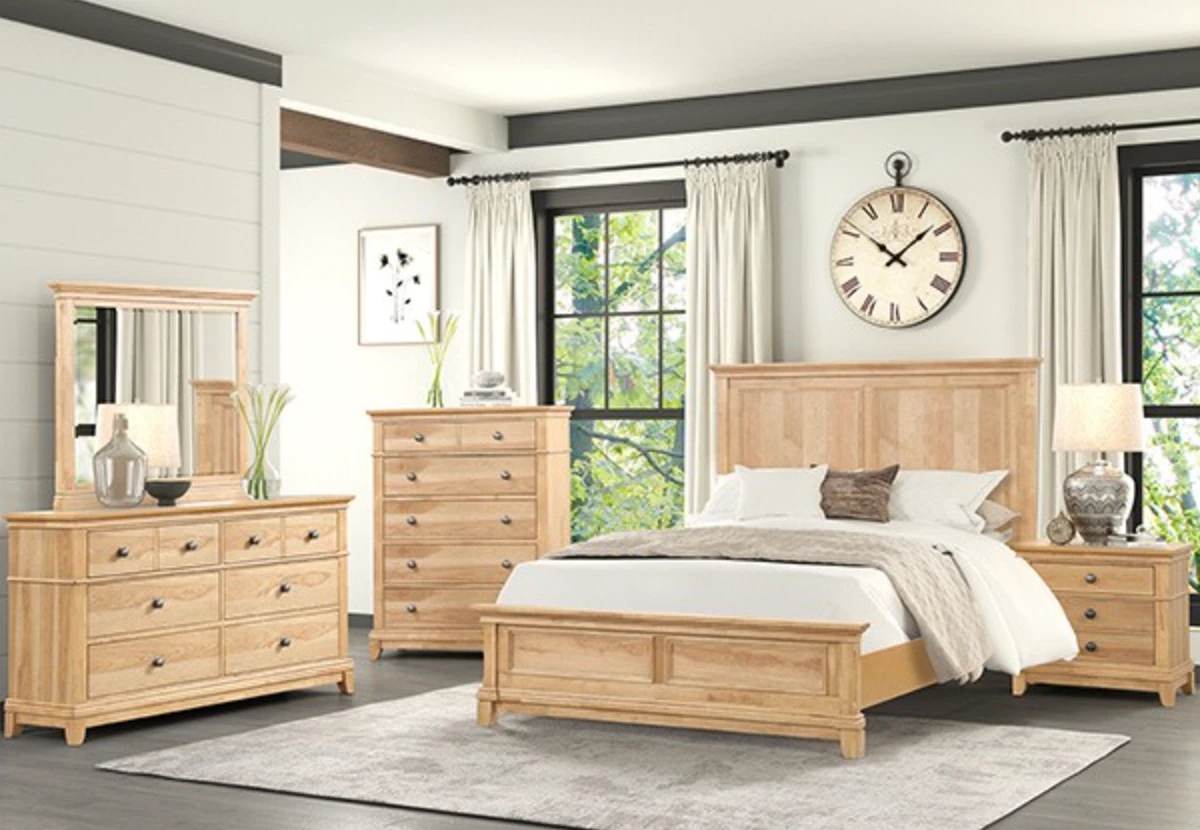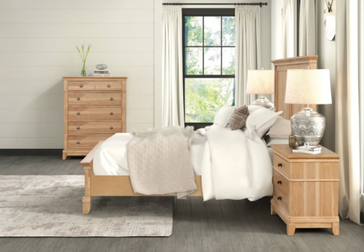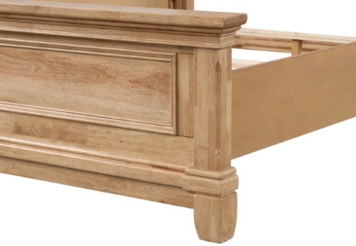 The Julien Wood Bed Frame crafted from solid wood with a natural oak finish. A timeless aesthetic to brighten up your bedroom.