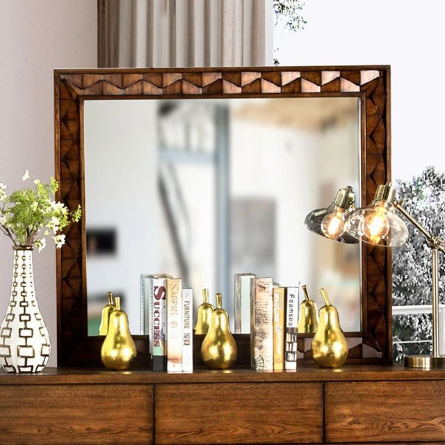 Patterned honeycomb designs texturize with geometric shapes and clean lines to redefine any setting. Chestnut brown finishes are warm and rustic, showing distinguished natural wood tones.