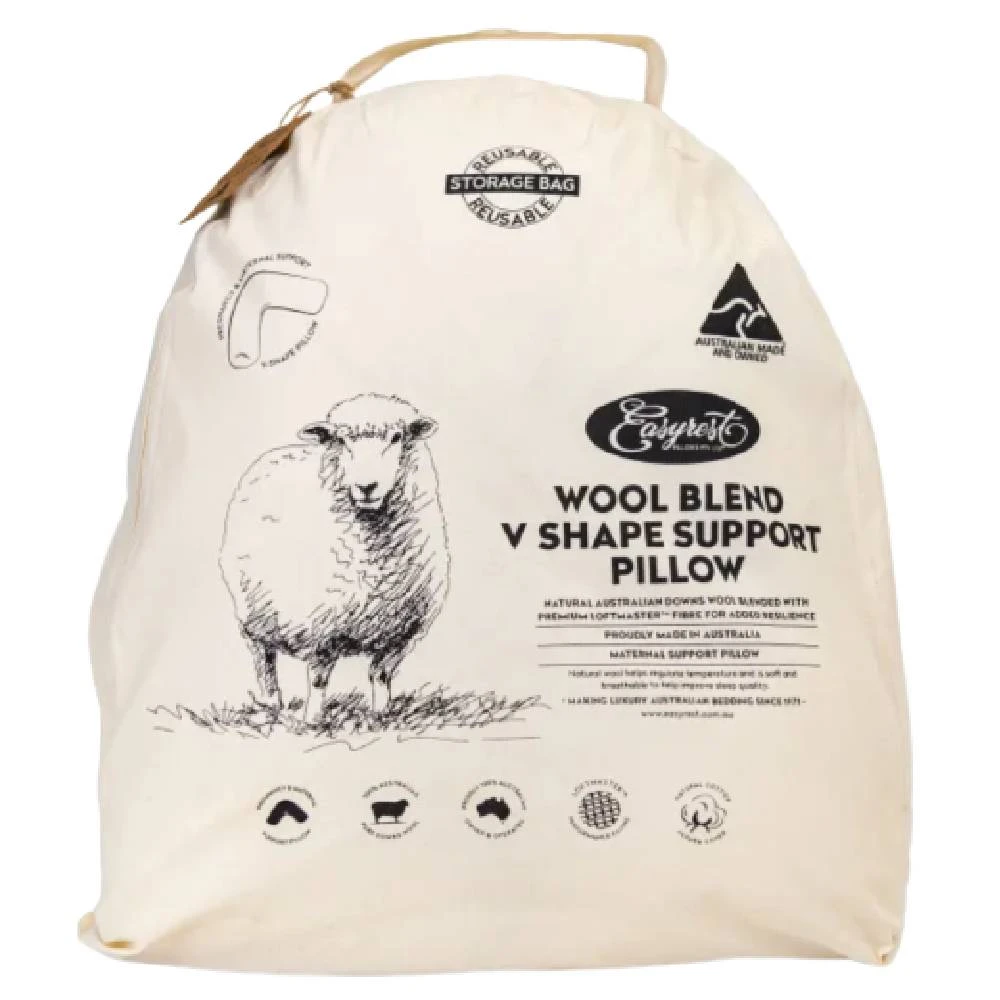 The natural support, breathability and temperature balancing properties of Pure New Australian Wool combined with the long life and resilience of Hollow Polyester fibre for added support of the head and neck. Generous fill for extra support during pregnancy and nursing.