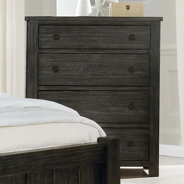 Take the rustic appeal of this chest home with you! Simplistic in design but plenty in charm, this chest will fit into any home. The barnyard style chest features round drawer knobs.