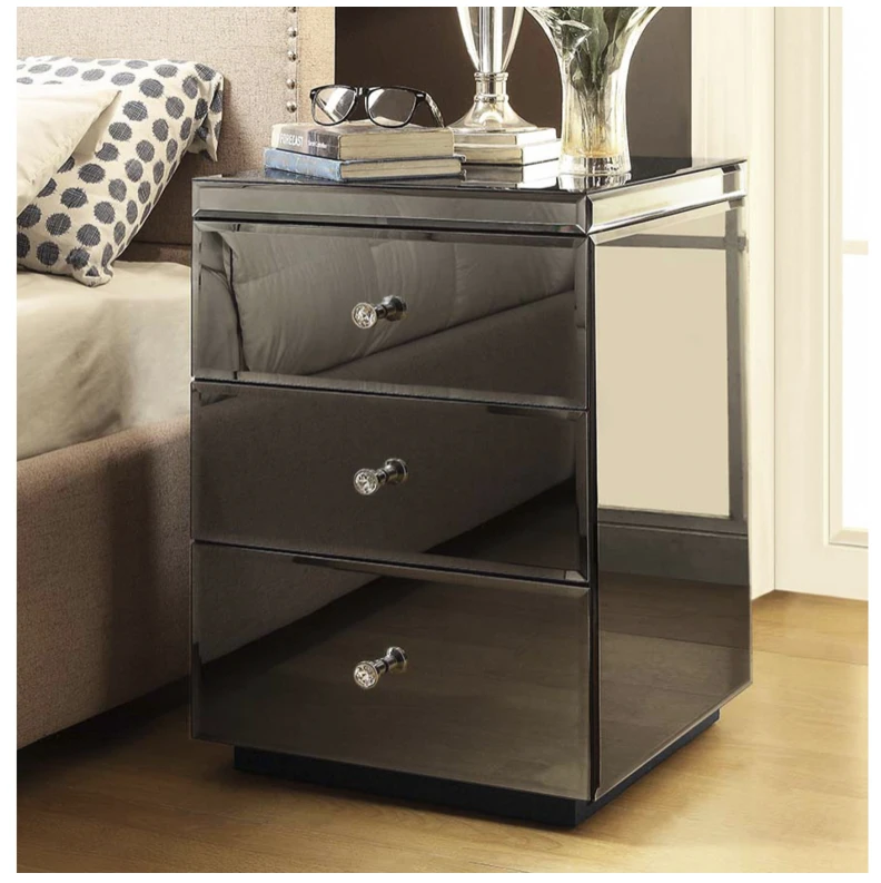 This Contemporary Inspired, fully mirrored Rio Crystal Mirrored 3 Drawer Bedside Table Chest reflects light beautifully, making it an elegant, and practical bedside table to suit any bedroom. This is a unique range.