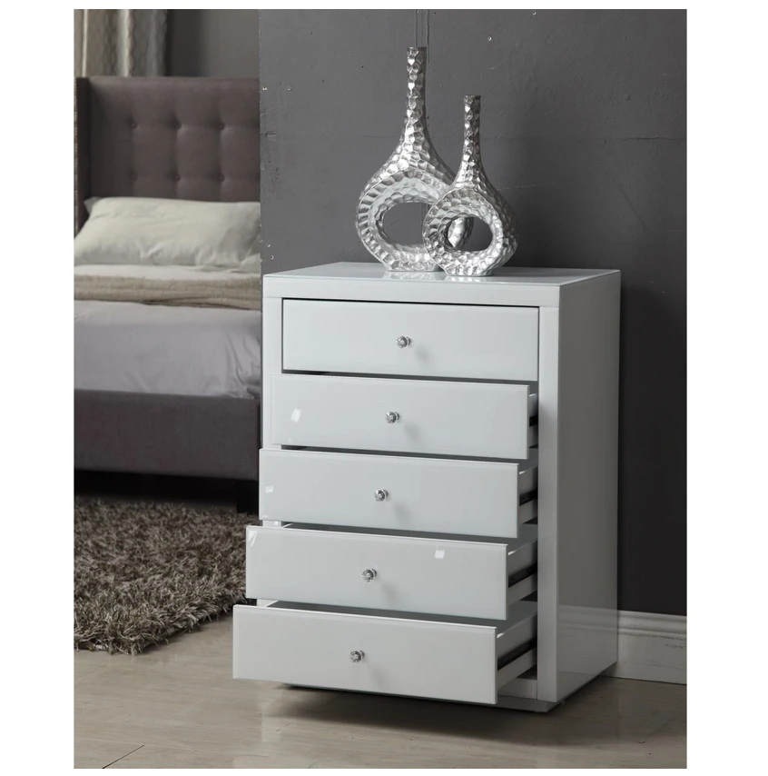 Constructed to a high-quality specification, this dazzling piece of furniture has smooth, easy-glide drawers finished with glamorous crystal effect handles.